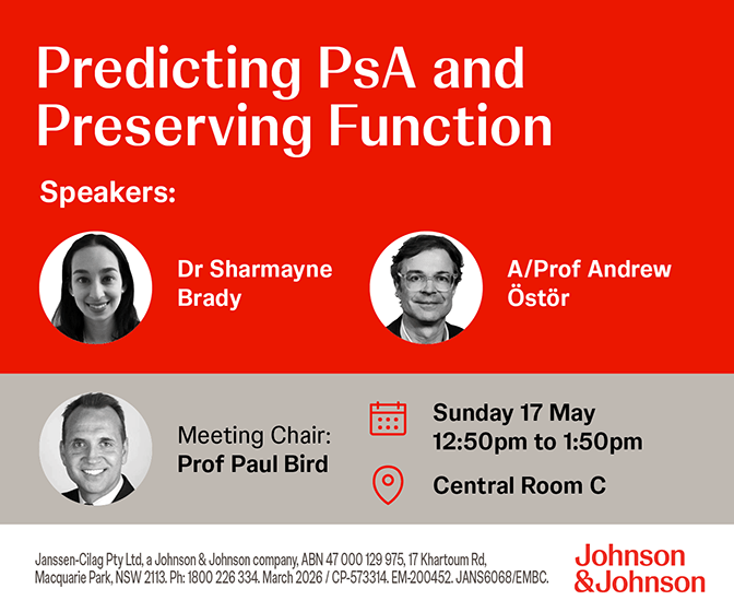 International guidelines increasingly recommend risk‑based ILD screening for patients with RA; however, there remains no standardised method for implementing these guidelines within Australian rheumatology practice. This session will address the ongoing debate: early and systematic screening versus selective and pragmatic screening, with particular emphasis on practical feasibility in Australian clinics. Moderated by Wendy Stevens, Susanna Proudman and Paul Kubler will present arguments both for and against routine screening, while Mandana Nikpour and ILD specialist John Mackintosh will offer practical insights to inform a clinically relevant discussion.